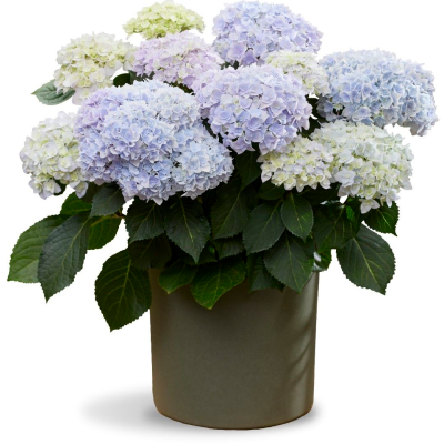 Гортензия «DOPPIO AZZURRO» цветет в июле синими, махровыми, крепкими цветами чистого цвета. Растение имеет зеленые листья, отличается компактным ростом и легкостью ветвится. Ремонтантный сорт .