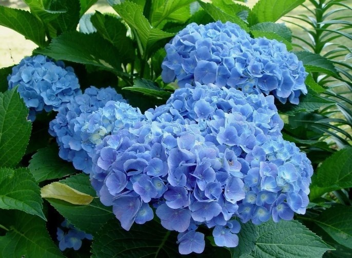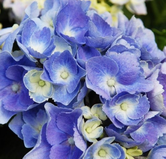 РЕМОНТАНТНАЯ! Красивоцветущий компактный кустарник. Соцветия шарообразные, многочисленные. Листья крупные, яйцевидные, тёмно-зелёного цвета. Цветки бывают синими, голубыми и розовыми. Окраска цветков сильно зависит от показателя кислотности. Регулирование кислотности почвы помогает получить требуемый цвет. Чтобы растение имело оригинальную синюю окраску, нужно хорошее усвоение алюминия, чего можно добиться лишь на кислых почвах. При недостатке алюминия цветки будут голубого цвета. Вид отличается обильным цветением и пышной кроной. Цветёт с конца июля до заморозков, на побегах прошлого и текущего года.