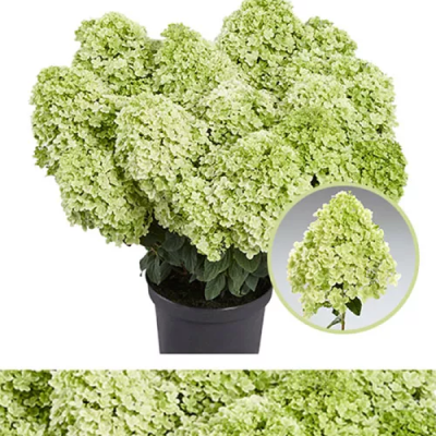 Высота 100 см. Компактный, хорошо разветвленный куст. Ветви крепкие, прямостоячие, покрыты листвой интенсивно-зеленого цвета. Метелки крупные, плотные, изумительно зелено -лаймового цвета. На солнечном участке или в легкой полутени цветение пышнее и ярче. Рано зацветает и обильно цветет с июня и до заморозков.