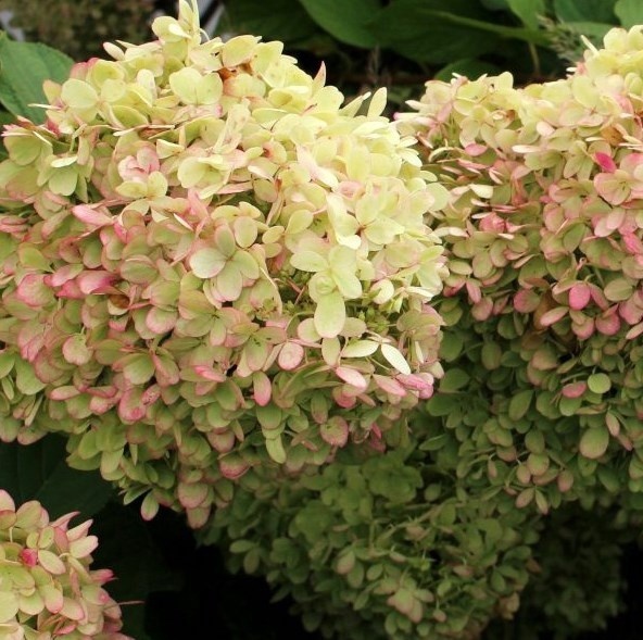 Отличается особенно крупными соцветиями при компактной форме куста. Соцветия в начале цветения кремово-зелёные, позже слегка розовеют. Эта малышка достигает в высоту всего лишь 50-70 см.